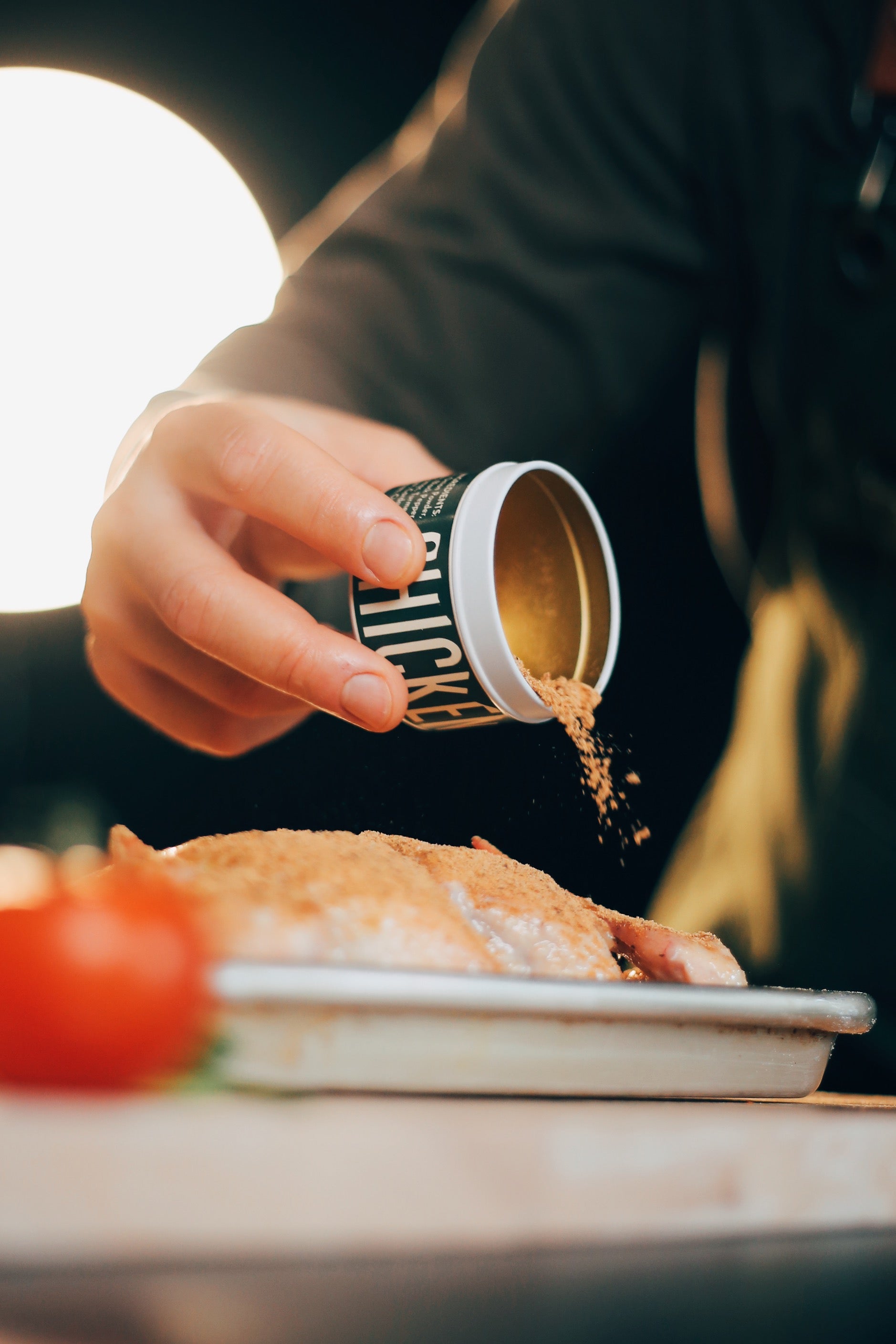 Chicken Seasoning: Garlic Powder, Onion Powder, Coriander, Black Pepper, Cloves, Cardamom, Cinnamon, Cayenne Pepper, All Spice, Tumeric, Sumac, Paprika
